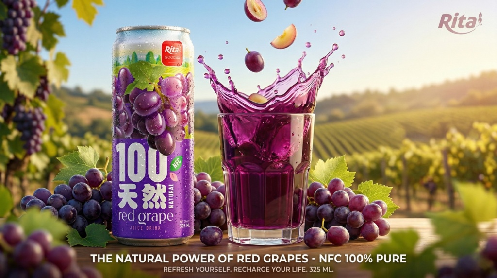RITA 饮品推出 325ml 细长罐装 100% 天然红葡萄汁饮料,专为追求正宗、可直接上市产品的资深经销商与自有品牌合作伙伴打造。本品精准契合消费者对简单、天然原料及高端果汁体验日益增长的需求。作为领先制造商,我们专注提供批量供应方案,以品质与稳定性赋能您的品牌。