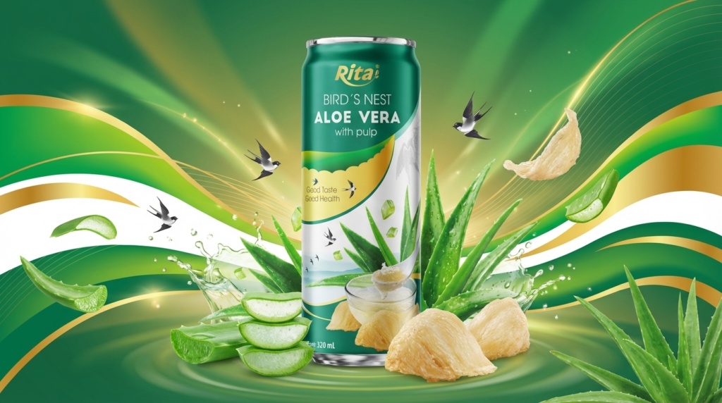 RITA 330ml 燕窝芦荟果肉饮品,融合燕窝温润与芦荟清爽,口感顺滑清甜,高端滋养,支持 OEM 定制与批量出口。